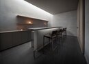 曲面を持つ壁面はユニプラルSLのローマン仕上げ。丁寧にコテで押さえられたしっとりとした風合いは、プロダクトのもたらす光の効果を体感する空間にとても相性がいい。